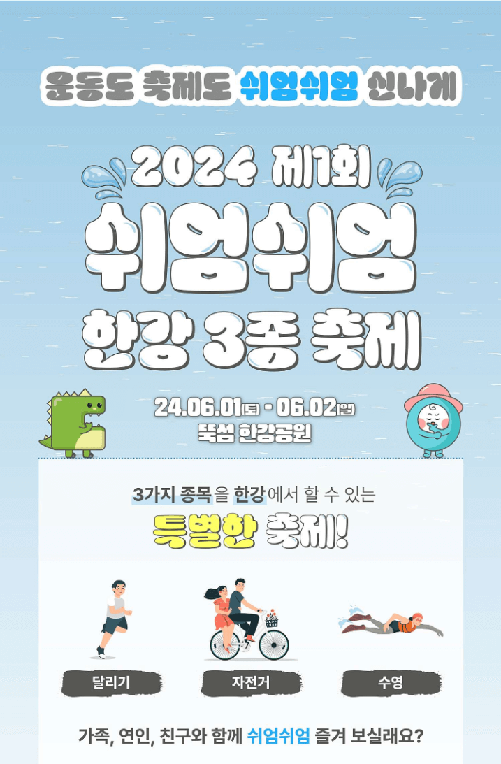 쉬엄쉬엄 한강3종 축제 행사 공연일정 및 경기코스는