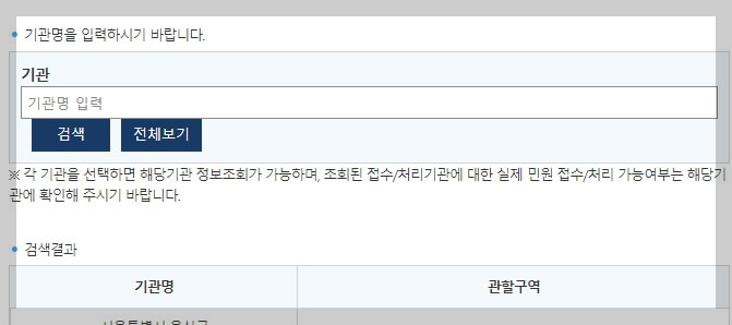 -개별 민원에 대한 문의 사항은 접수·처리기관(관할처리기관)과 연락하시기 바랍니다.